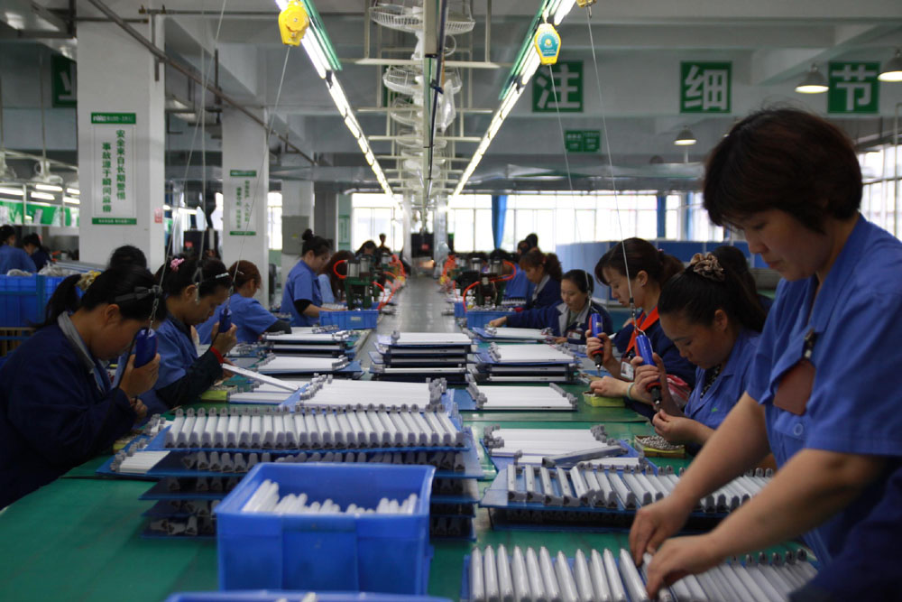 圖:移民在萬州區近年新引進的企業─雷士電工萬州生產基地的生產線上工作
