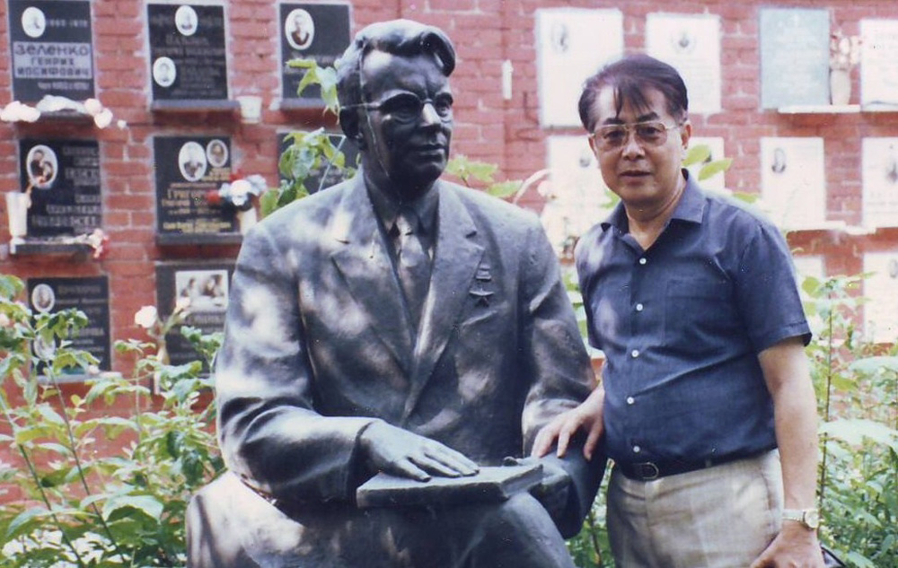 圖:本文作者在伊薩柯夫斯基雕像前留影