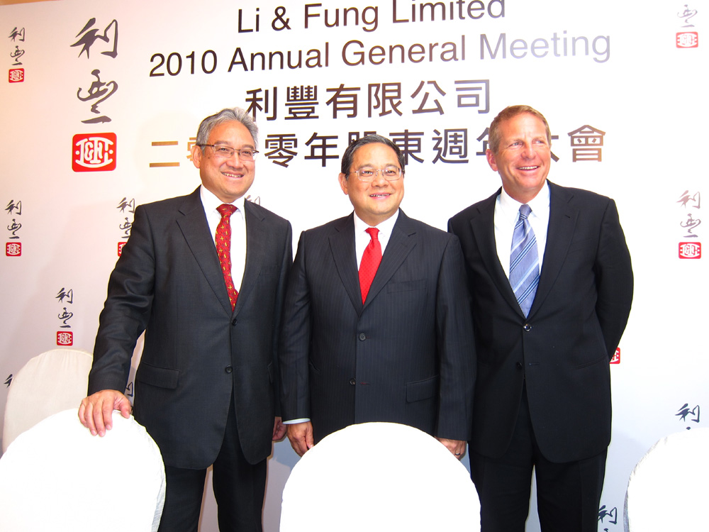 圖:圖左起,利豐董事總經理馮國綸、主席馮國經、總裁樂裕民 本報攝