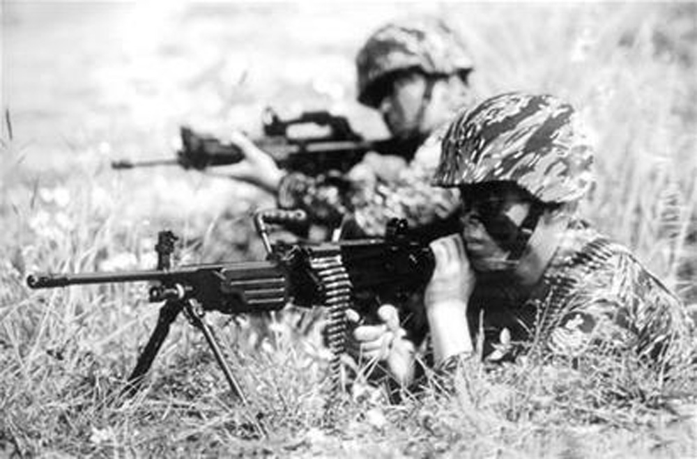 台灣研製的T75的5.56㎜機槍1981年通過定型試驗,1987開始投產,並陸續裝備台陸軍部隊,1997年裝備台海軍陸戰隊。該槍是以比利時Minimi通用機槍為藍本研製的,目前是軍方班級單位制式裝備,射程800m,射速600~900發/分。該槍裝有氖發光點,用於夜間瞄準射擊。