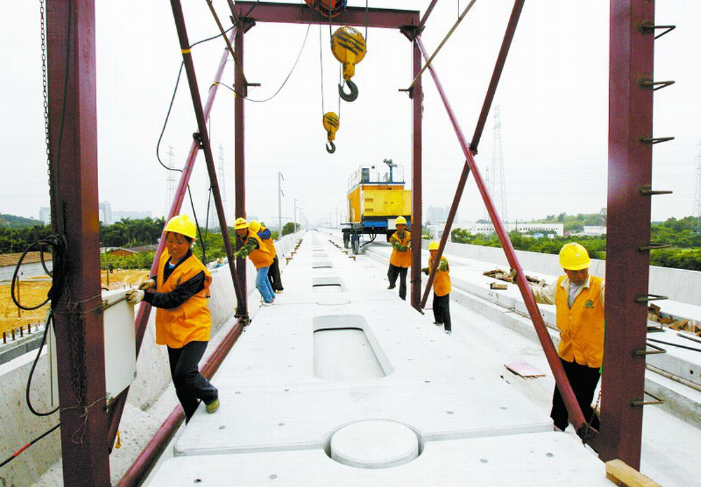 圖:廣珠城軌部分路段從今年2月中旬開始無砟軌道板吊裝 方俊明攝