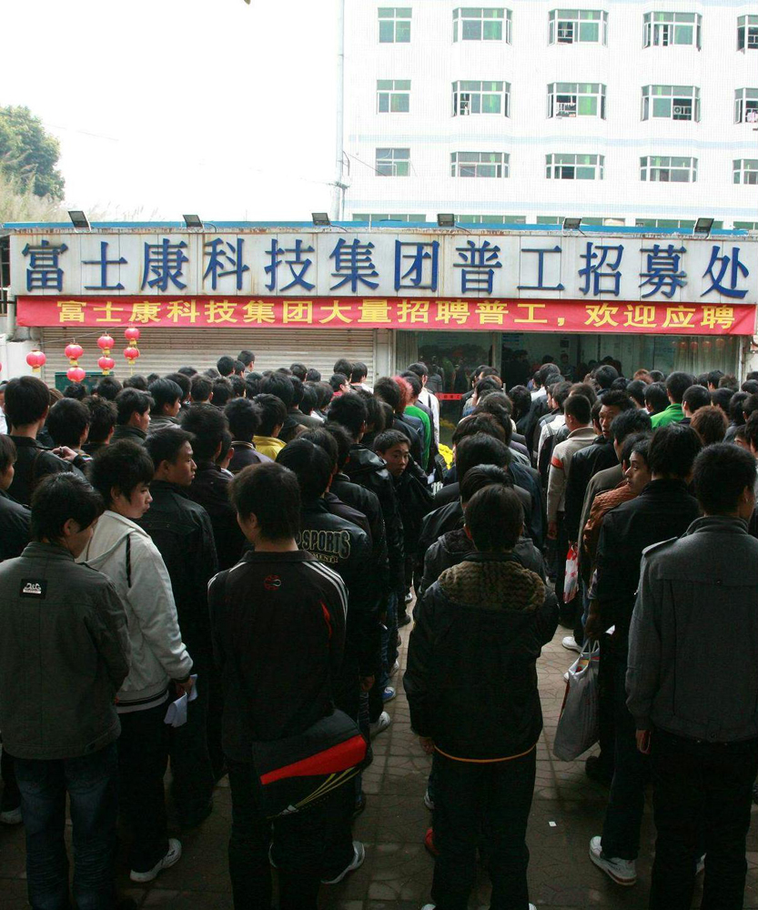 圖:今年2月,大量應聘者等候在富士康深圳龍華招募點,大部分都是二十歲左右的青年 資料圖片