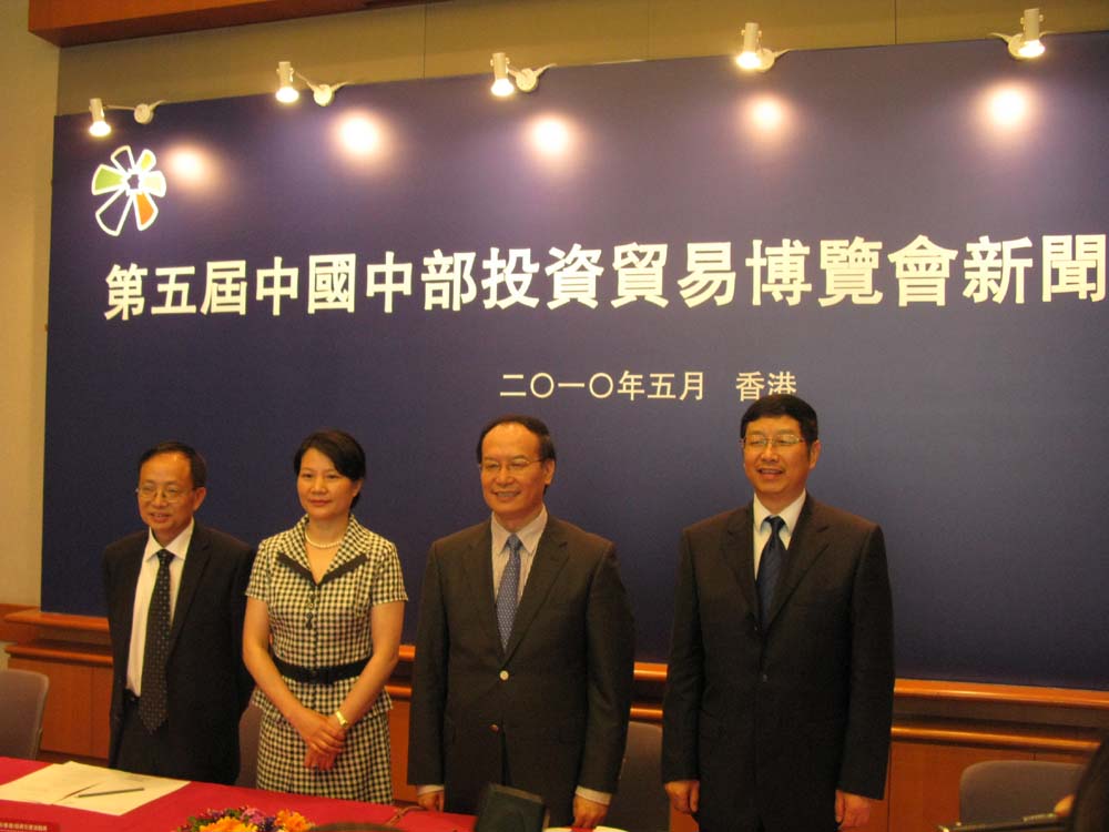 圖:第五屆中部博覽會昨在港舉行新聞發布會,介紹博覽會詳情,左三為江西省政府秘書長譚曉林