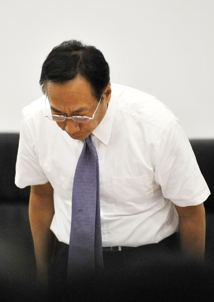 圖:郭台銘在深圳富士康鞠躬致歉  新華社