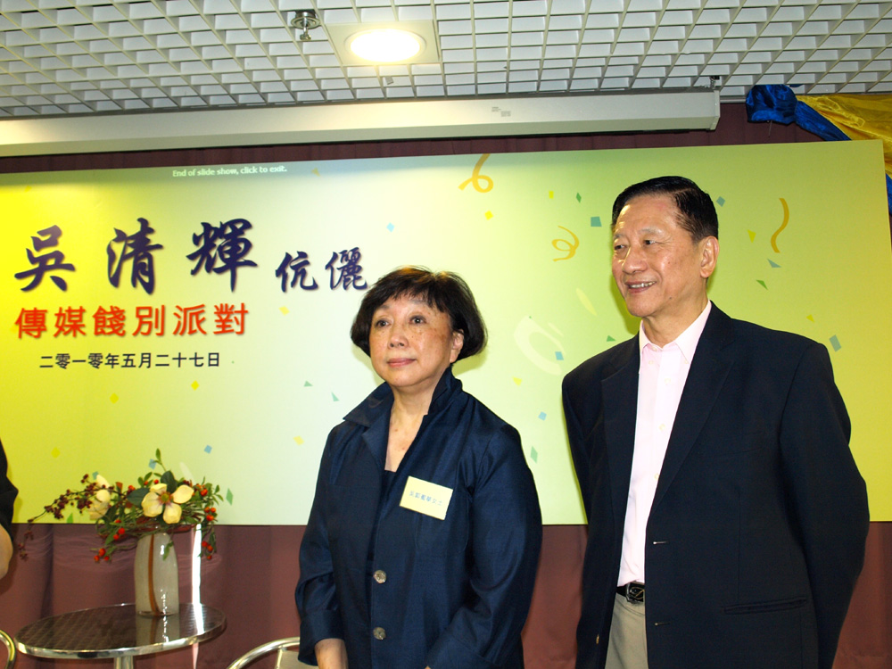 昨天的吳清輝夫婦餞別傳媒會上,罕見露面的吳夫人郭蜀華與吳校長一同亮相,更向在座來賓,包括攝影記者一一送上她親手燒製的陶藝飾品,出席的新聞界高層以至新晉記者則聯袂送上祝福語句。