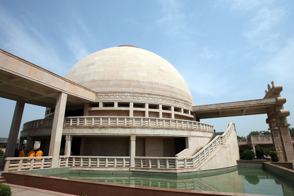 這座佔地面積6000平方米、建築面積3450平方米的印度風格佛殿,矗立在「中國第一名剎」洛陽白馬寺的西院。這是印度政府在世界上捐建的第一座佛寺,耗時5年。在印度,一座由中國修建的中式佛教建築「玄奘紀念堂」在2007年修繕竣工。