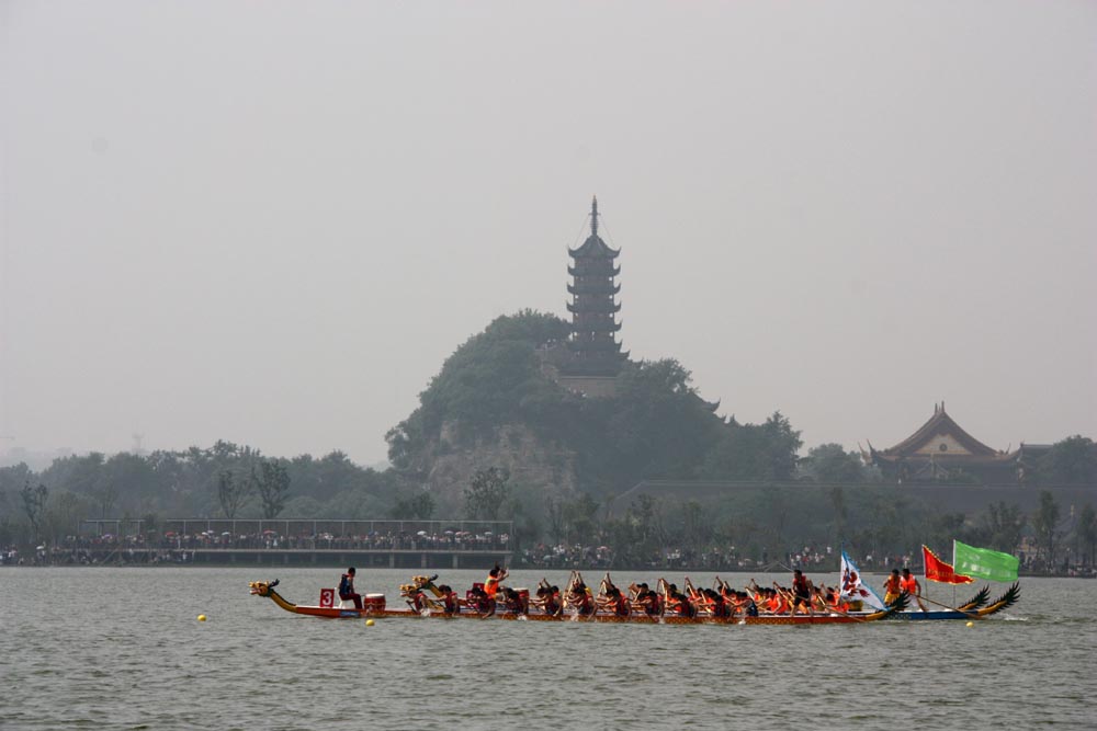圖:鎮江重現金山競渡勝景,背景為以「水漫金山」傳說而聞名於世的金山景區 賀鵬飛攝