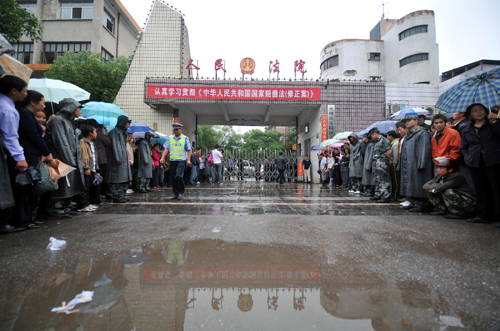 圖:永州法院槍擊事件發生後引發廣泛關注,眾多市民聚集在法院門前\新華社