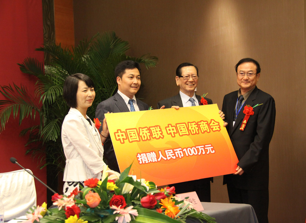 圖:陳有慶、朱奕龍代表中國僑聯、中國僑商會捐贈100萬元予貴州僑商會