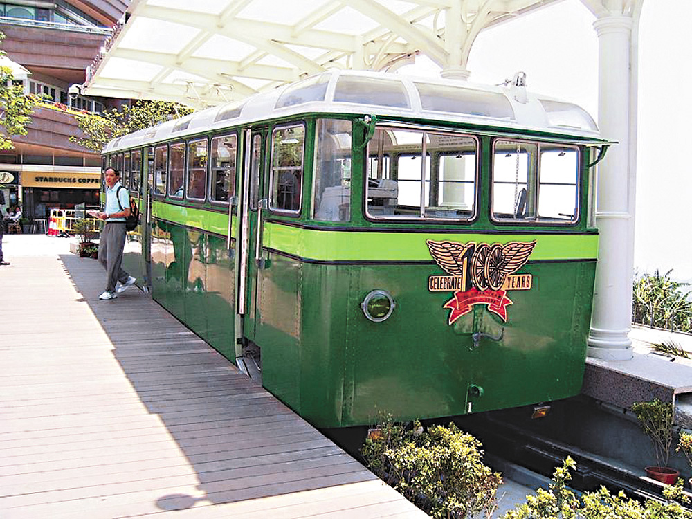 圖:現時擺放在山頂廣場旁展覽的第3代纜車綠色車廂