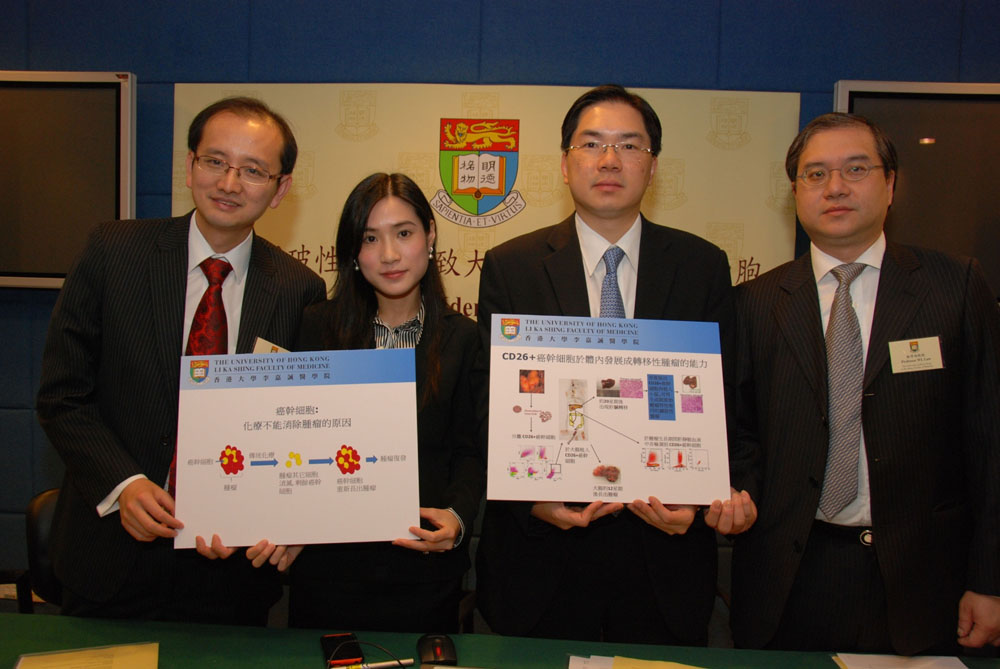本港每年有超過四千宗大腸癌新症,病人接受手術後,仍有逾五成人復發或腸外轉移,肝臟是最常轉移的器官。港大醫學院最近一項研究發現,在二十七名大腸癌病人中,五人在手術後復發並出現肝臟轉移,他們的體內全部有一種叫「CD26+」的癌幹細胞。另外十九名沒有「CD26+」的患者,則全部都沒有出現轉移情況。