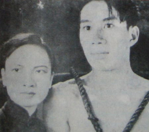 圖:香港第一部局部彩色電影《廣州一婦人》的劇照。右為羅品超,左為梁雪霏
