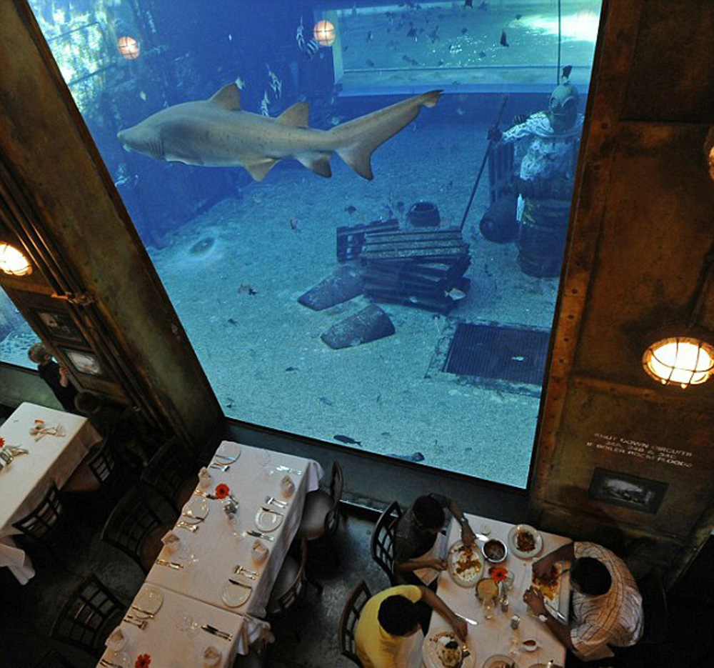 圖:遊客可以在海底餐廳邊品嘗美食,邊欣賞窗外遨遊的鯊魚