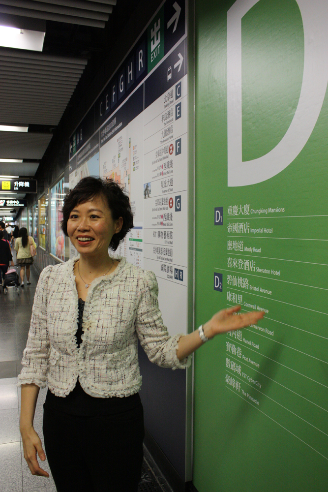 港鐵總經理(市務及車站商務)楊美珍表示,不時接獲遊客及市民意見反映車站指示不清晰,令市民較難找到所需出口。為改善有關情況,港鐵斥資數百萬元,更換尖沙咀站出口指示牌,除了擴大站內英文字母出口指示牌,以及在車站升降機旁增設全新出口資料指示牌外,更首次參考歐洲鐵路站做法,在A1和D出口新設覆蓋整幅牆壁的綠色標誌,令乘客一目了然。