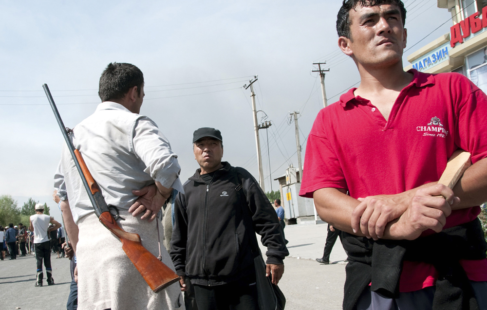 圖:烏茲別克人十二日在奧什手持武器保衛家園\美聯社