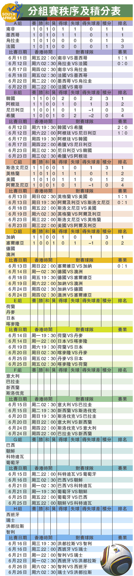 分組賽秩序及積分表