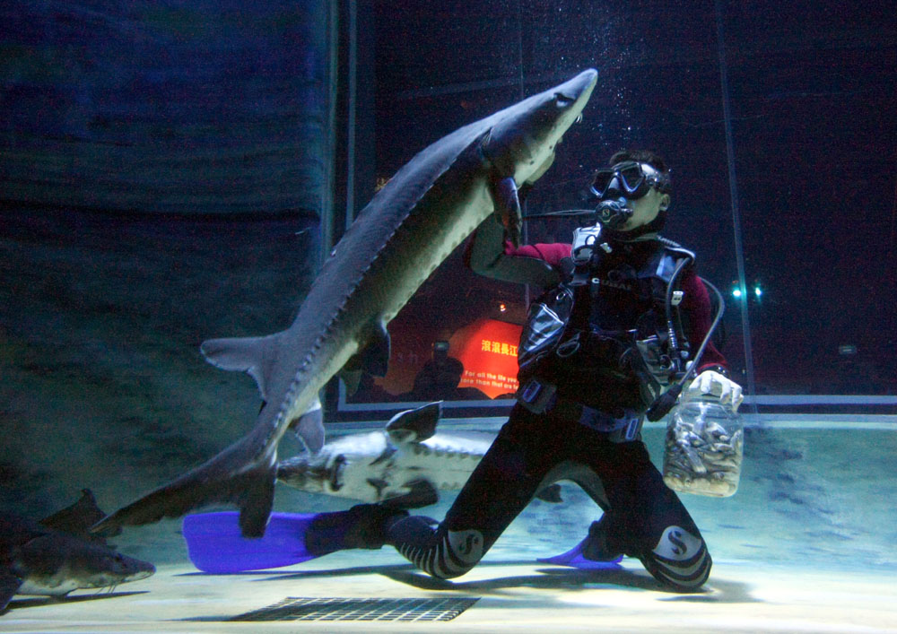 ○八年中央曾贈送十條中華鱘給香港,在海洋公園飼養,其中一條被海狼咬死,兩條懷疑不適應海水而死亡,另外兩條病倒。對此,海洋公園副行政總裁李繩宗解釋,上次用海水養殖中華鱘是一個研究項目,之所以出現不適甚至死亡的現象,因海水魚池的鹹度不可調校,導致部分中華鱘不適應,相信今次用全淡水飼養就沒有問題。