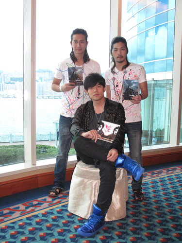 圖:周董(中)帶同浪花兄弟來港宣傳新碟