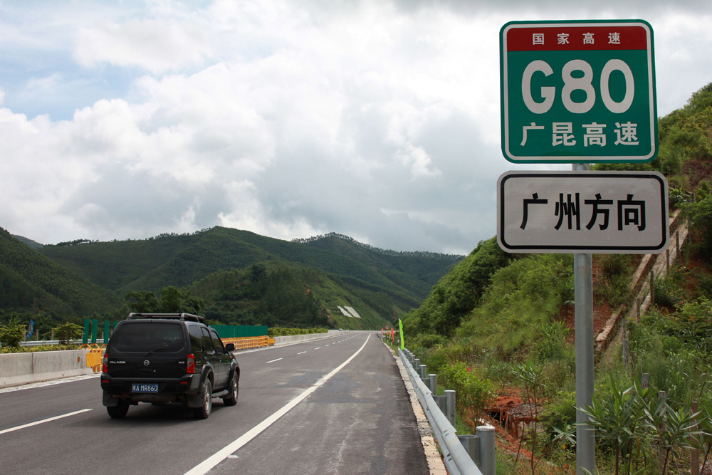 圖:中國國家高速公路網主線編號由「G」加1位或2位數字順序號組成,圖為廣昆高速粵境廣梧高速\方俊明攝