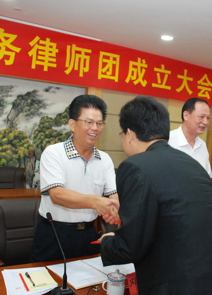 圖:鄧維龍向省工會法律服務律師團的律師代表頒發聘書\袁秀賢攝