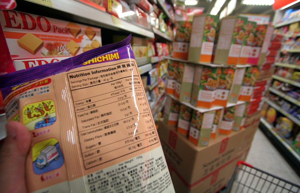 圖政府抽查近一千四百款食品,發現十四款不合營養標籤要求本報攝