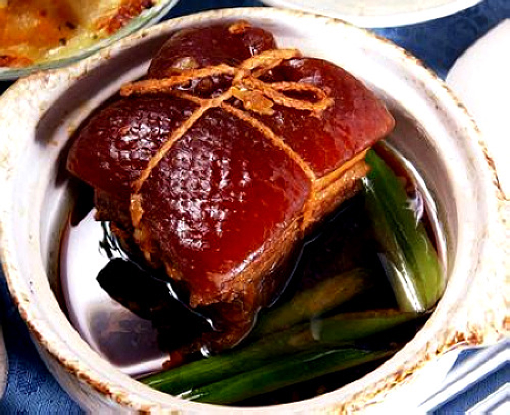 圖:如今的東坡肉,肉切得方正,還綁了草繩