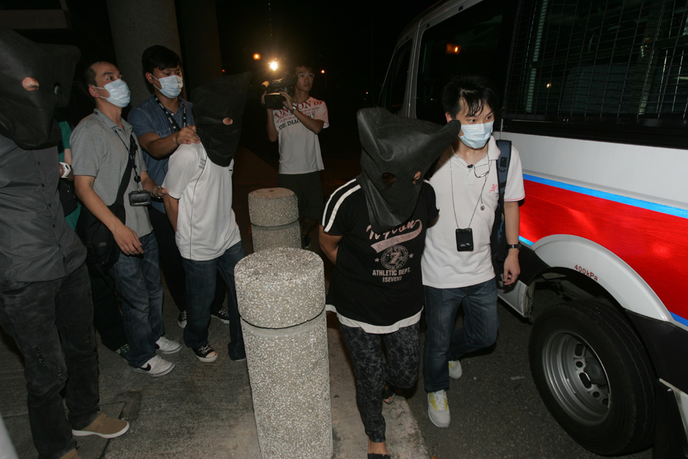 被捕兩名男子姓石(二十六歲)、姓譚(二十七歲),女子姓周(五十一歲),涉嫌販毒被通宵扣查。