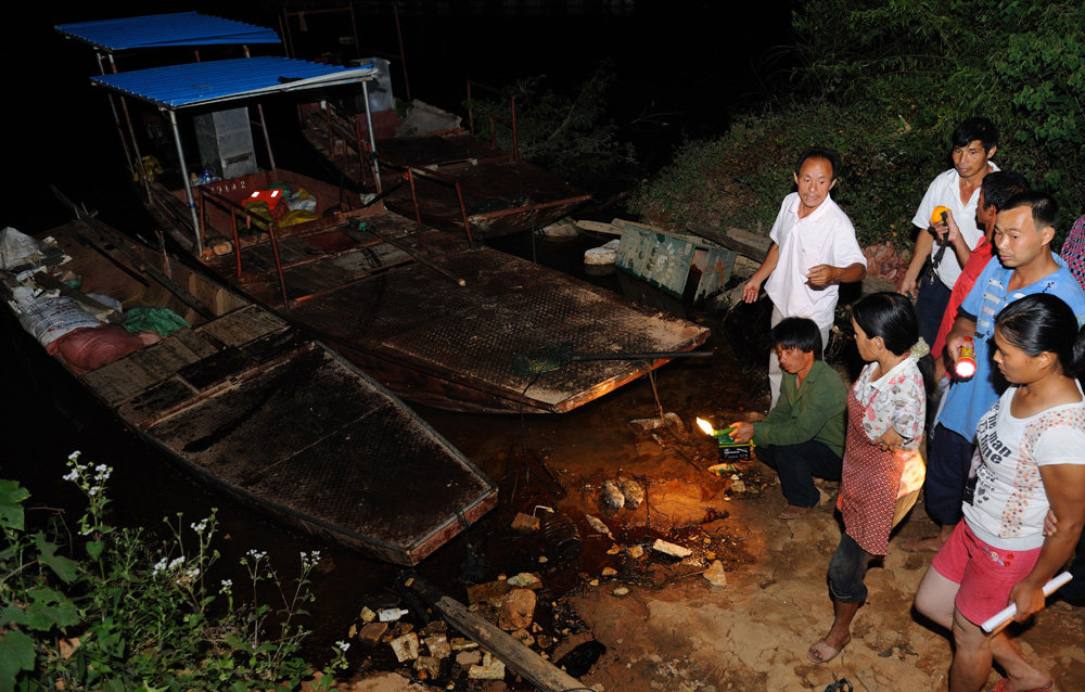 圖:12日,福建省上杭縣下都鄉豪康村漁業養殖戶在棉花灘水庫邊查看死魚新華社