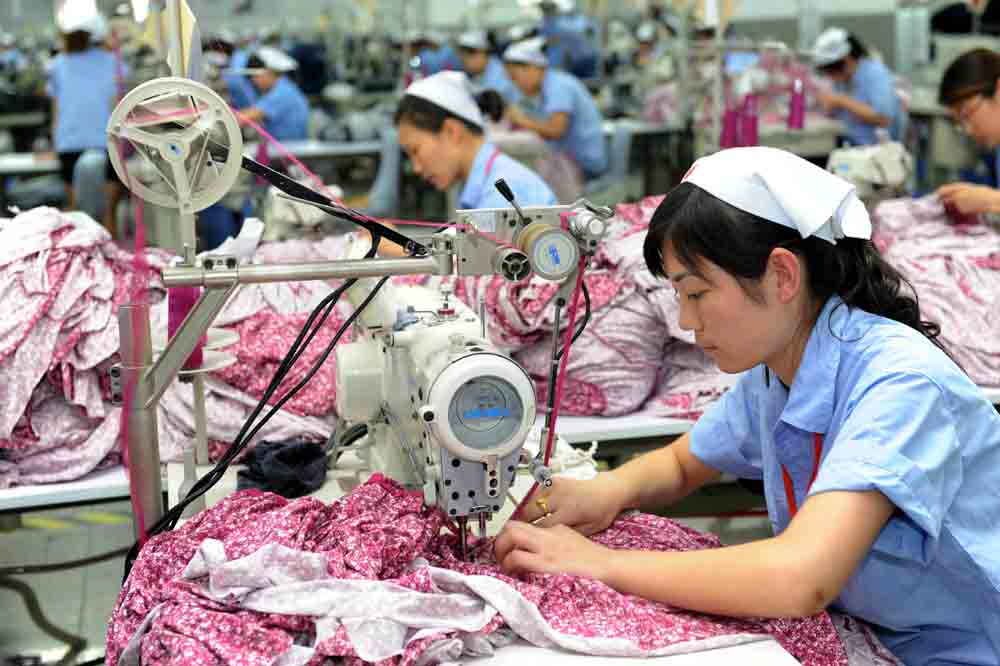 圖:半年多來,內地圍繞收入分配改革的討論越來越多,企業員工的薪酬問題尤為令人關注。圖為十二日青島一家服裝廠的工人在生產服裝\新華社
