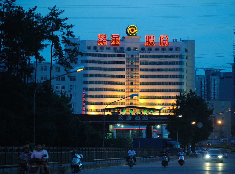 圖:紫金礦業宣稱堅持「要金山銀山,更要綠水青山」的理念。圖為杭縣城區的紫金礦業辦公大樓\新華社