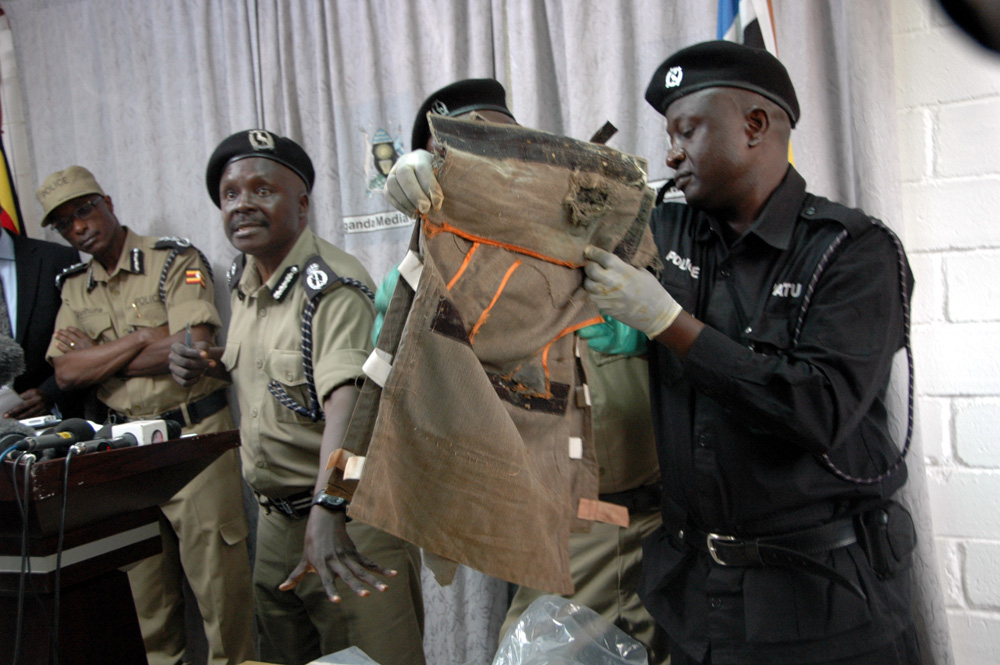 當地一間欖球俱樂部及一間埃塞俄比亞餐館,星期日晚直播世界杯決賽期間遇襲,死者包括一名美國志願人員及一名愛爾蘭女子,其餘死者來自烏干達或埃塞俄比亞。同「基地」有聯繫的索馬里反政府組織「伊斯蘭青年黨」承認責任。
