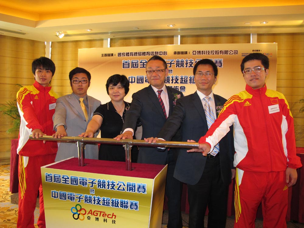 圖:亞博科技主席兼行政總裁孫豪(右三)及國家體育總局體育信息中心副主任楊英(右四)\本報攝