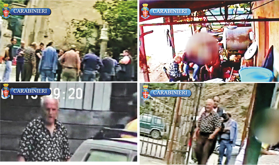 圖:意大利憲兵團提供的錄像顯示,「光榮會」頭目多梅尼科·奧佩迪薩諾在卡拉布里亞與組織其他成員開會議事\美聯社