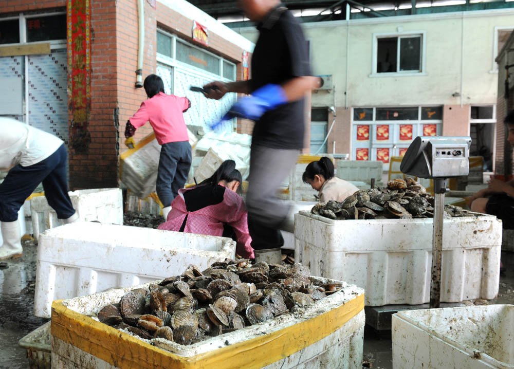 圖:20日,大連多家水產品銷售市場生意如常,暫時沒有受到原油泄漏事件的影響\新華社