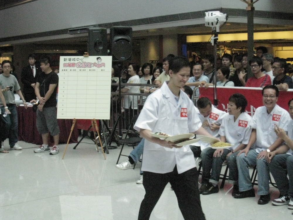 「全港首屆茶餐廳夥計王比賽」決賽由恒基兆業主辦,昨日中午二時在馬鞍山新港城廣場舉行,打入決賽的十名夥計在台上使出渾身解數,同場亦有「馬仔茶餐廳」攤位遊戲的暑期活動,推廣本土的茶餐廳文化。