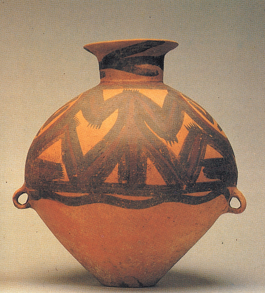 附圖的彩陶罐,就是仰韶文化的代表作。上方繪原始彩色紋飾;但下方一般都不施彩。很多人均不明白箇中原因。其實,主要與新石器時代先民的生活方式及習慣有關。當時,大家起居之處簡陋,並沒有桌椅等家具;各人不是蹲踞,就是席地而坐,故彩陶紋飾居上半,皆為圍坐者視線最容易接觸的地方,可一方面慢慢地善用器皿,一方面隨時可細心欣賞彩陶上的花紋。