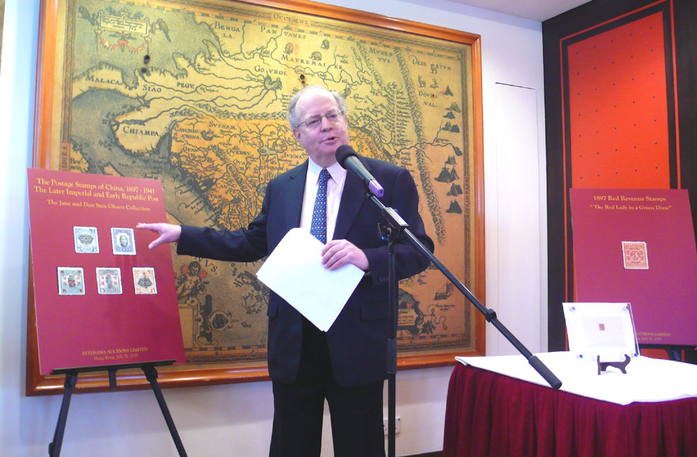 該拍賣行董事舒耐特(Jeffrey Schneider)昨日在記者會上介紹說,郵票可說是見證了人類通信、社會及經濟發展的歷史,第一枚中國郵票是一八七八年以龍為設計題材,象徵王權與地位,之後清代便很盛行以龍為題材的郵票,直至一九一一年中華民國成立,才有所改變。