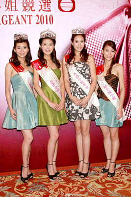 圖:四位出爐港姐亞軍張秀文(左起)、冠軍陳庭欣、季軍莊思明和最上鏡小姐李雪瑩會見傳媒
