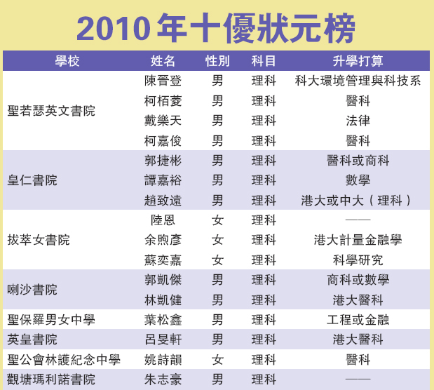 2010年十優狀元榜