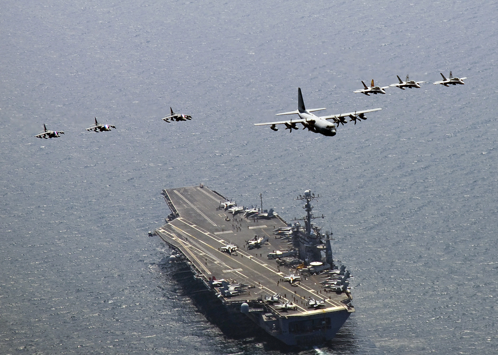 圖:美國「華盛頓」號航空母艦上月在日本海參加美韓聯合軍演\資料圖片
