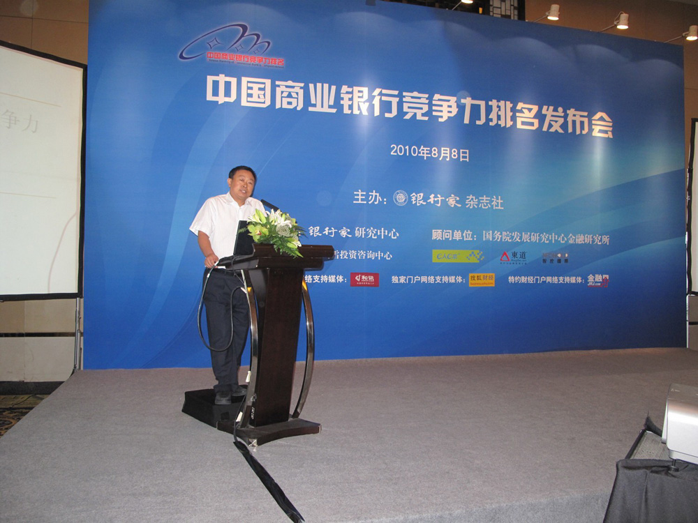 圖:銀行家研究中心副主任歐明發布二○一○中國商業銀行競爭力排名\本報攝