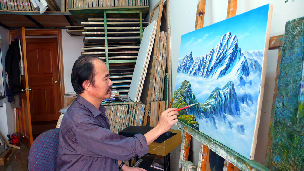 圖:胡道昌在專心作畫
