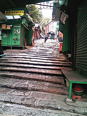 後來中區填海,砵典乍街延伸到干諾道中,這一段的砵典乍街並不用石塊鋪砌路面,但人們依然稱為石板街。