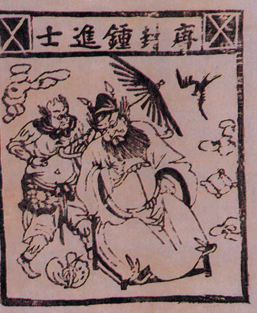 附圖的鍾馗像,並非名家手繪,而是明代時很原始的安徽木版印「紙馬」,上方橫印「再封鍾進士」,右方有燕子飛舞,旁為小鬼打傘;線條簡潔,形象鮮明,並無套色。