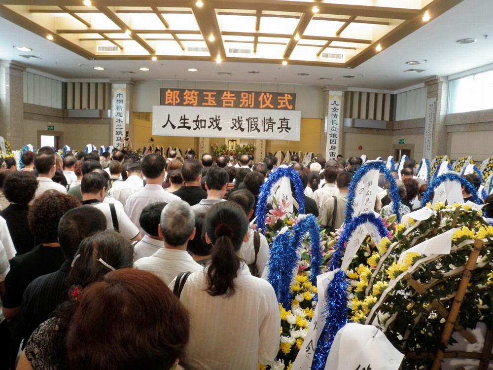 記者在現場看到,粵劇藝術大師紅線女敬送了花圈,粵劇界知名人士陳小漢、彭熾權、黃俊英等參加了告別儀式。出席儀式的人士都獲得一本《郎筠玉紀念特刊》,內附一張DVD影碟,詳盡地介紹了郎筠玉的藝術人生和經典作品。