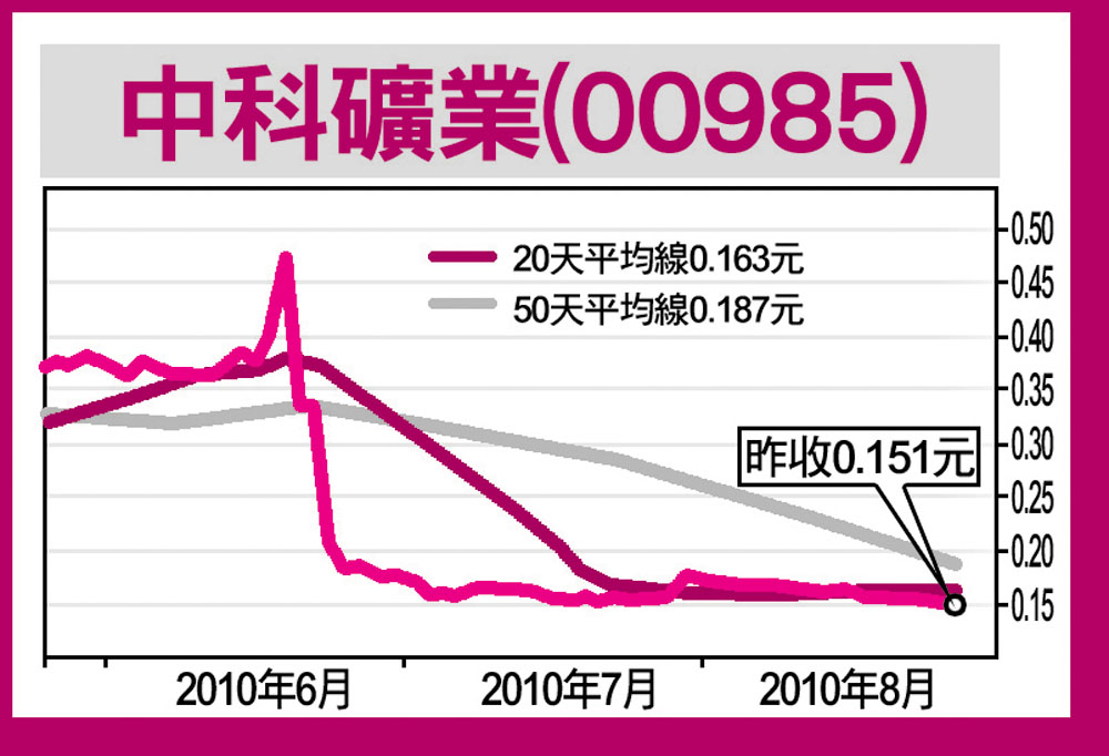 中科礦業(00985)近年多次抽水兼合股,股價表現差強人意,即使早前公布收購兩項大型金屬礦項目,對股價只帶來短暫刺激,近兩個月仍在低位徘徊,惟集團早前公布澳洲銅礦獲批復工,即最快今年度有收入,在國際銅價看升之下,這役「翻身戰」已不容有失。