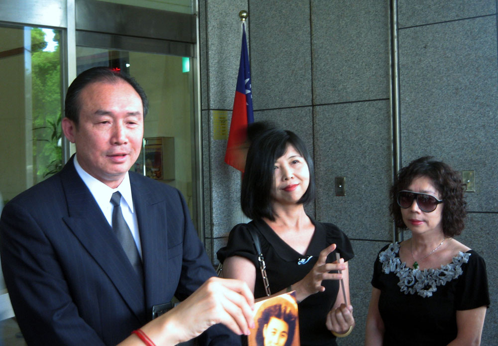 圖:自稱台塑創辦人王永慶4房子女的羅文源(左起),羅雪映、羅雪貞3姊弟,1日到台北地院家事法庭出庭,向法官聲請驗王永慶2房長子王文洋的DNA\中央社