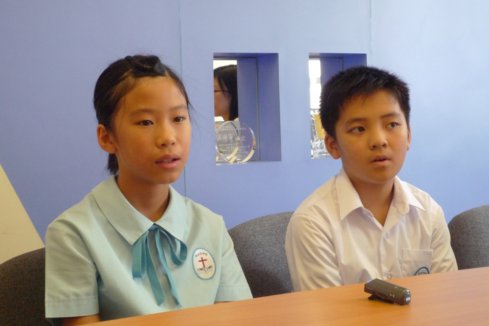 圖:中文班王嘉樂(右)希望,一年後能以最佳成績轉入英文班\本報攝