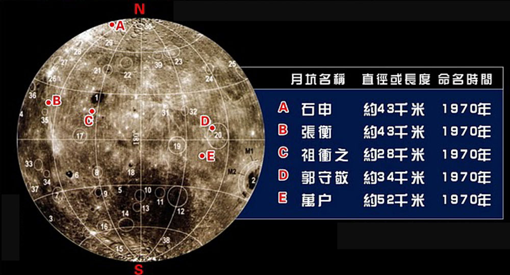 圖:月球背面以中國古代人名命名的月坑\資料圖片