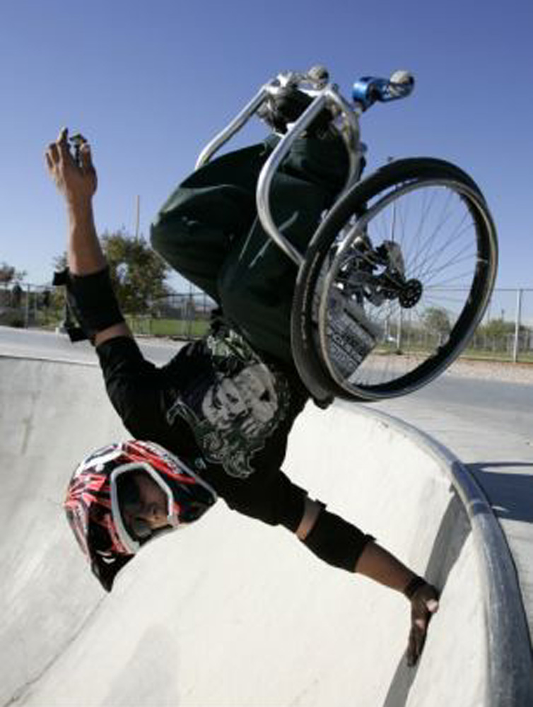【本報訊】據英國《每日郵報》6日報道:美國青少年輪椅特技人阿龍經歷無數次痛苦跌倒後,終於締造歷史,成功完成全球首個輪椅後空翻兩周的動作。這位不怕死的年輕人經過多月的練習及痛苦的嘗試,結果在上月26日首次完成該個危險的特技動作。
